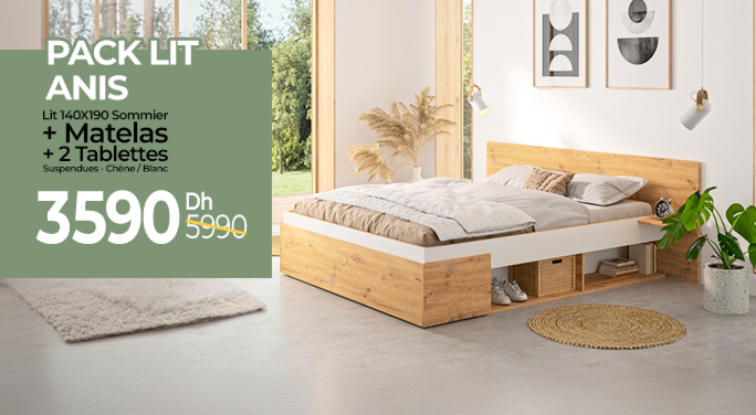 En savoir plusPack Lit Maya 160X200Cm + 2 Chevets + Sommier + Matelas Offert - Blanc / Chêne